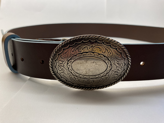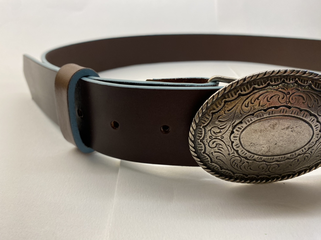 1.5” Brown full grain natural veg tanned chunky leather strap.